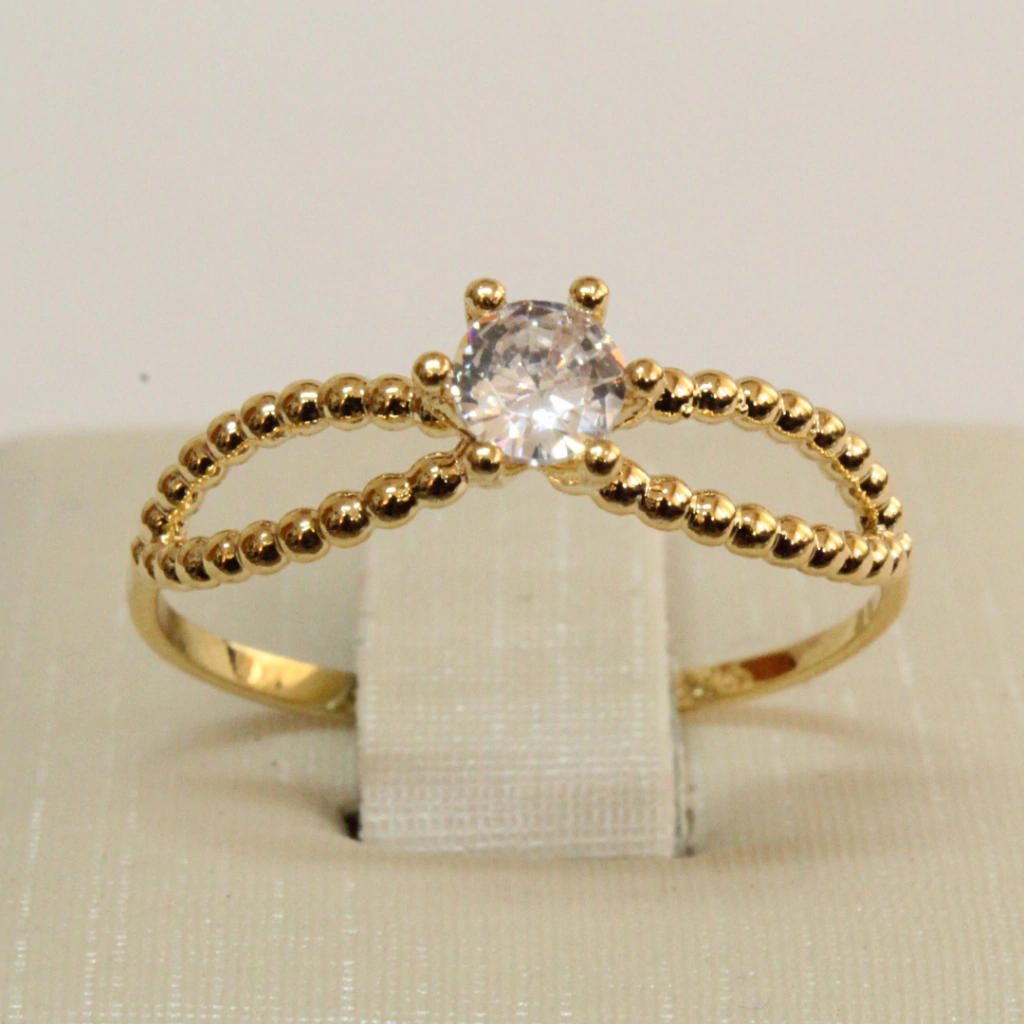 O destaque deste anel é o ponto de luz central em zircônia de 4,0mm, rodeado por um aro trabalhado com microesferas, que proporciona um efeito visual encantador. Este detalhe torna a peça ainda mais especial, refletindo a luz de maneira única e elegante.